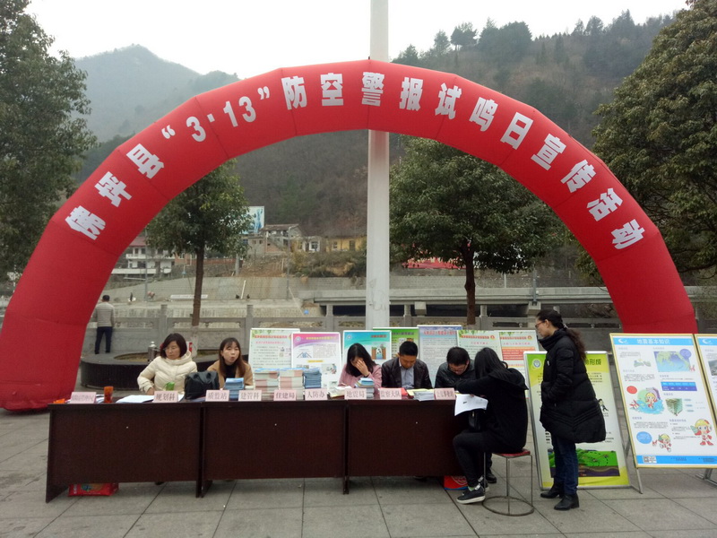 3月10日,佛坪县人防办在桥头广场集中开展了“3.13”防空警报鸣放日宣传活动。为了做好此次活动,佛坪县人民政府发布了《关于鸣放人民防空警报的通告》,并在佛坪电视台黄金时段反复播放了《通告》、《天盾》、《我身边的人防》宣传警示教育片和防空防灾知识。防空警报试鸣日宣传活动期间,悬挂宣传横幅6条,摆放人防知识宣传展板10余个,出动宣传车在县城规划区内进行了为期一周的法律法规宣传,共发放了《中华人民共和国人民防空法》、《陕西省实施<中华人民共和国人民防空法>办法》、《汉中市防空防灾知识宣传手册》等宣传资料2000多份,接受群众咨询100多人次,较好的宣传了人民防空法律法规,增强了全县群众防空防灾意识。